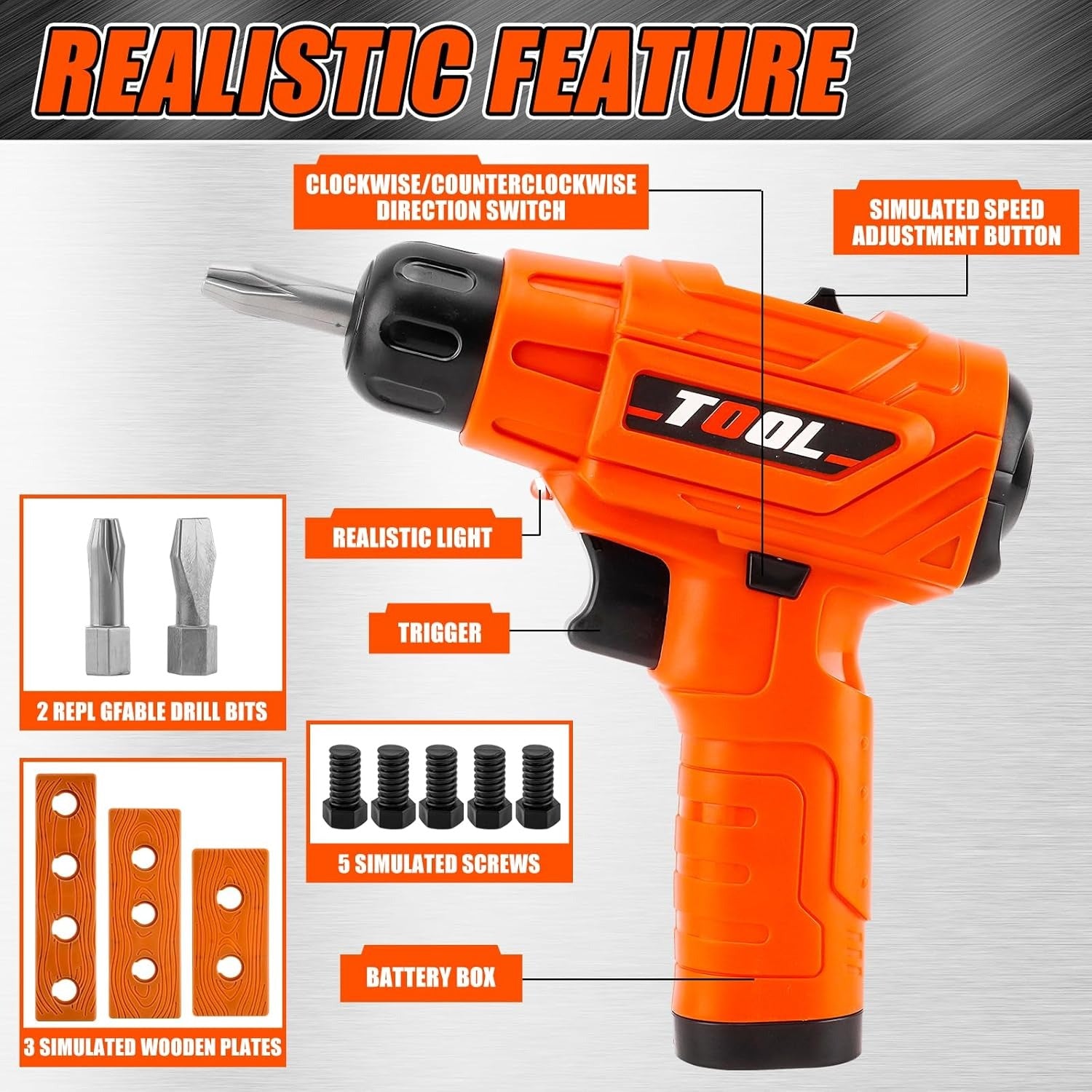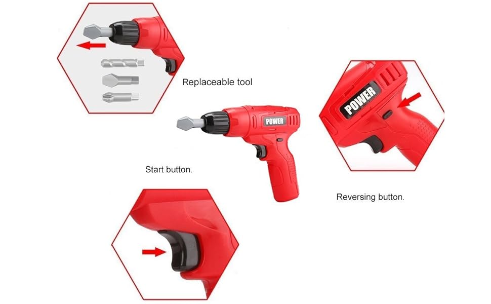 Toy drill, wrench, hammer, screwdriver