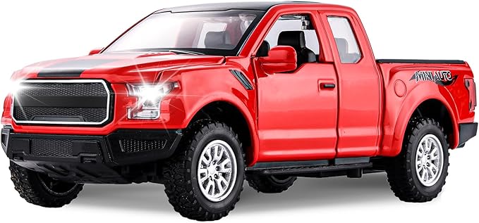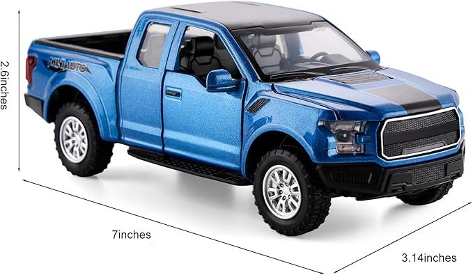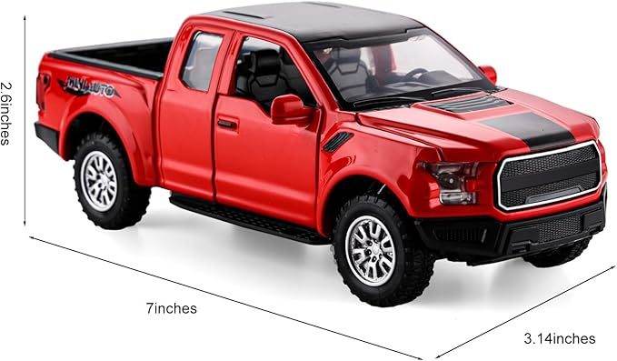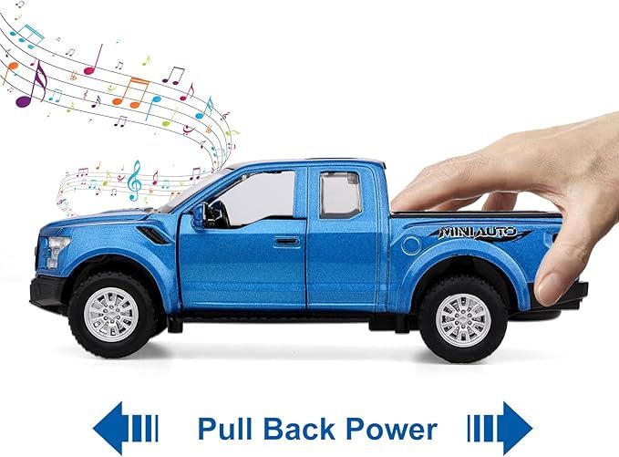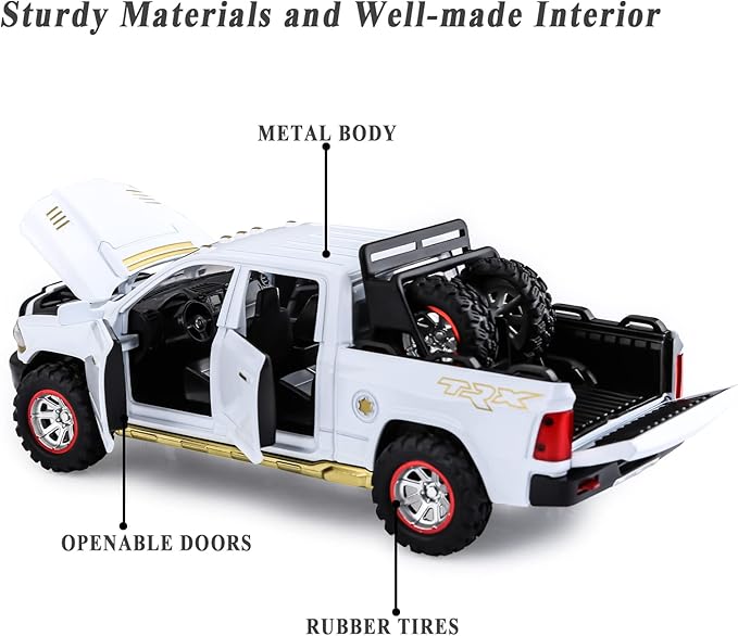 - [Funny Pickup Truck Toy]: Toy pickup truck with openable doors, hood, tailgate, realistic light and sound effect. Interesting toy trucks for boys aged 4-7